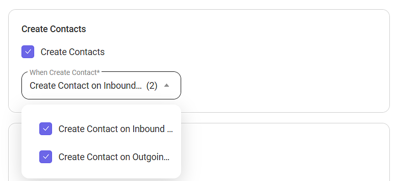 Create Contact on Inbound Call to Unknown Number. Create Contact on Outgoing Call to Unknown Number.