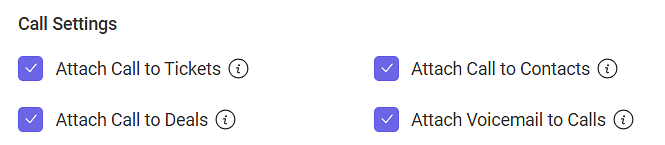 Attach Call to Ticket - This setting allows the system to automatically attach call audio recordings and related information to corresponding tickets in HubSpot.